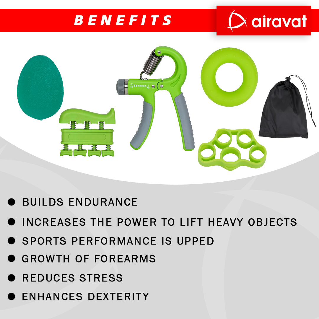 - Overall, Airavat’s hand grip strengthener kit is a versatile, high-quality, and convenient tool that can help you improve your hand strength, flexibility, and overall forearm power.