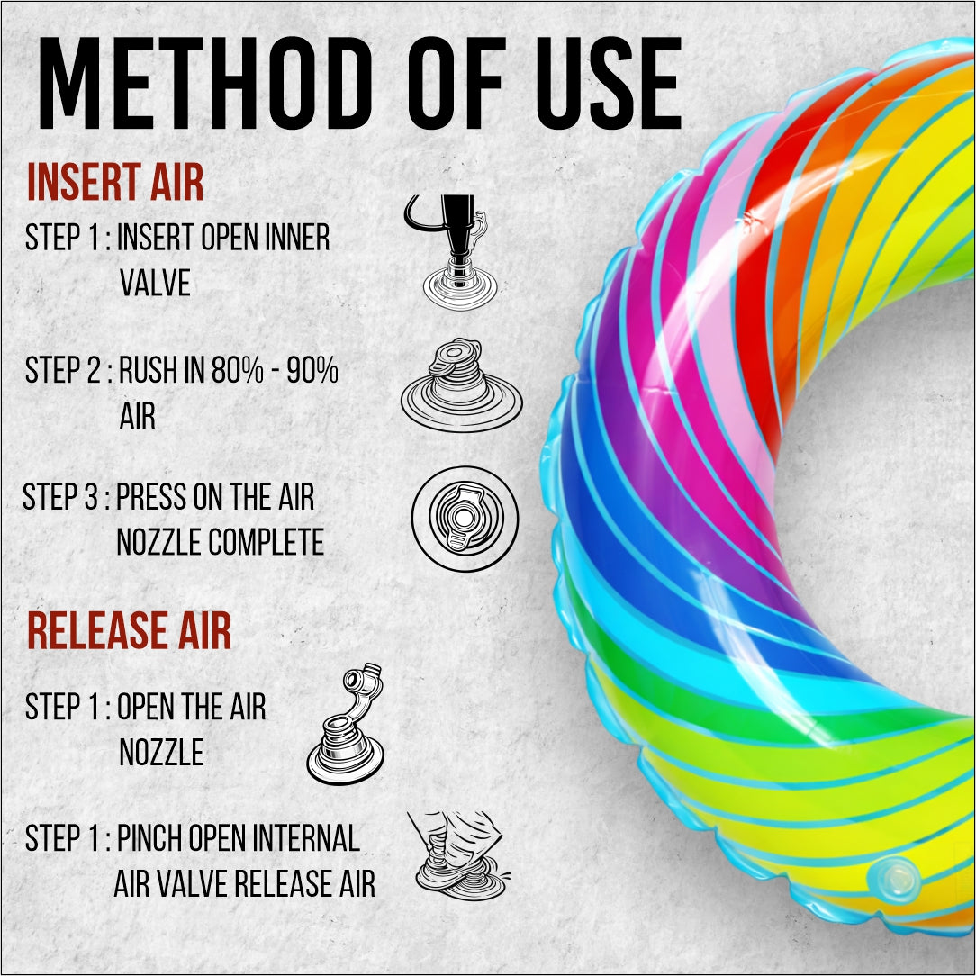- INFLATION: PVC swim rings are easy to inflate and deflate. They typically come with a valve that can be inflated using a pump or by mouth.
